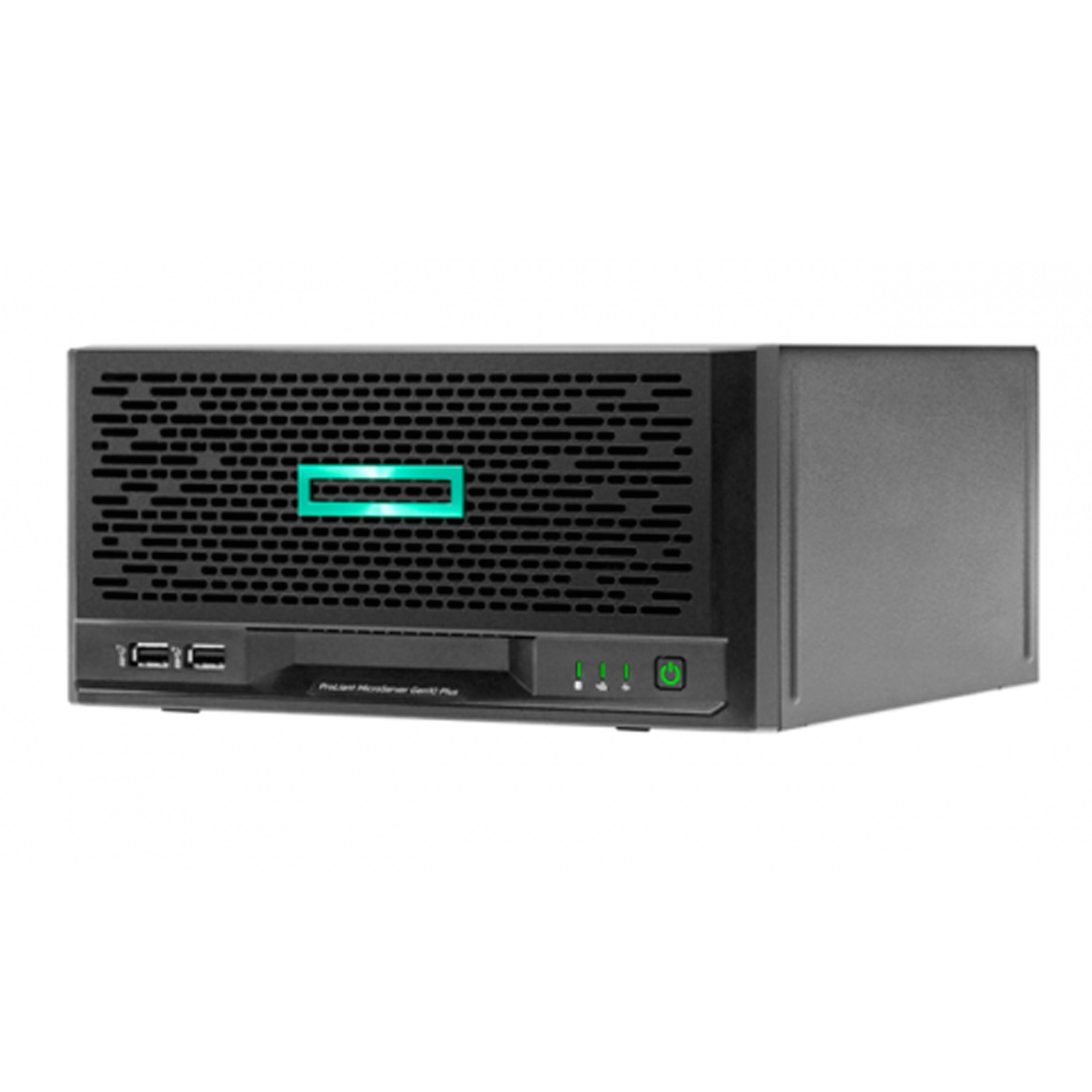 HPE ProLiant MicroServer Gen10 Plus server with one Intel Xeon E-2224 processor, 8GB memory, one 1 TB SATA Hard Disk Drive.